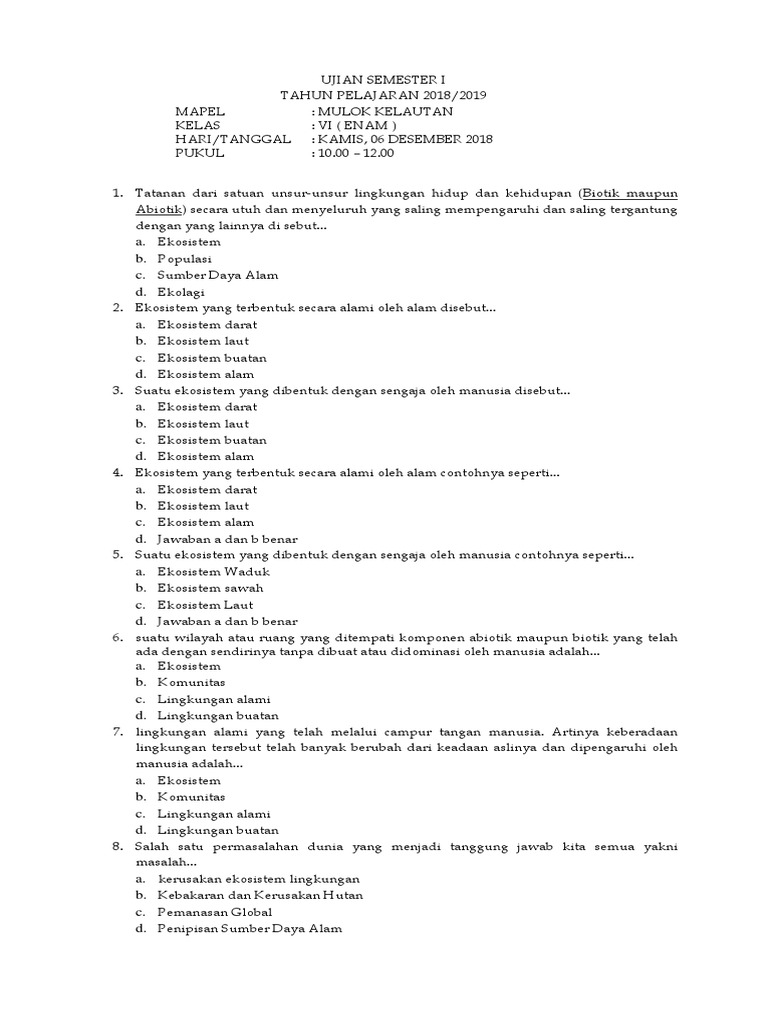 Soal uas matematika kelas 6 sd semester 1 (ganjil) dan kunci jawaban (www.bimbelbrilian.com).pdf download soal ulangan akhir semester 1 nama : Posted in umum tagged buku plsbd kelas 6, materi mulok kelas 6 semester 1, soal mulok dan kunci jawaban, soal mulok dan kunci jawaban kelas 6, soal mulok kelas 6, soal mulok pertanian dan jawabannya, soal mulok pertanian kelas 6 semester 1, soal pertanian kelas 5, soal pilihan ganda mulok pertanian kelas 6, soal ubi kayu kelas 3 sd, soal ujian. Centang x jawaban untuk surat yang menurut anda benar di lembar jawaban. Soal mulok dan kunci jawaban kelas 6. Soal kelas 5 semester 1 dan kunci jawaban soal tematik kelas 6 sd semester 1.