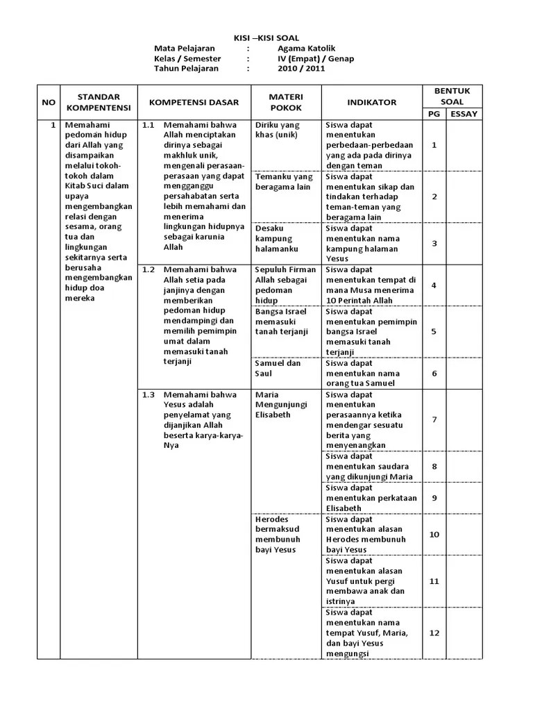 Soal Ujian Agama Katolik Kelas 6 Semester 2 / Kisi Kisi Soal Agama Katolik Pdf / soal uts agama kristen kelas 5 semester 2 download 2017 partles com.